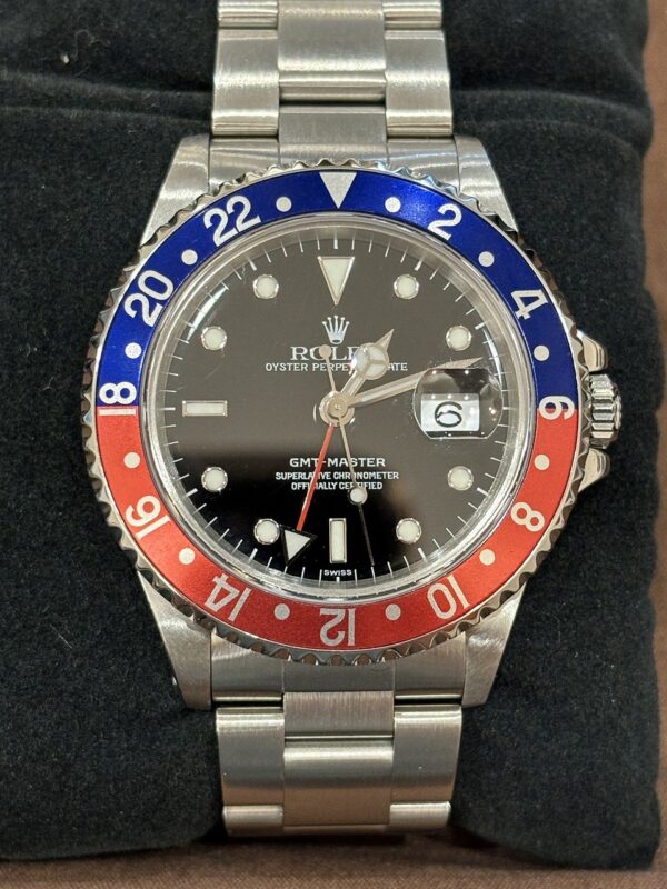 青と赤の鮮やかなベゼル、通称「ペプシ」カラーが目を引くこのモデルは、生産終了後もヴィンテージロレックスとしてその価値が右肩上がりに高騰している、まさに資産価値の塊とも呼べる逸品です。