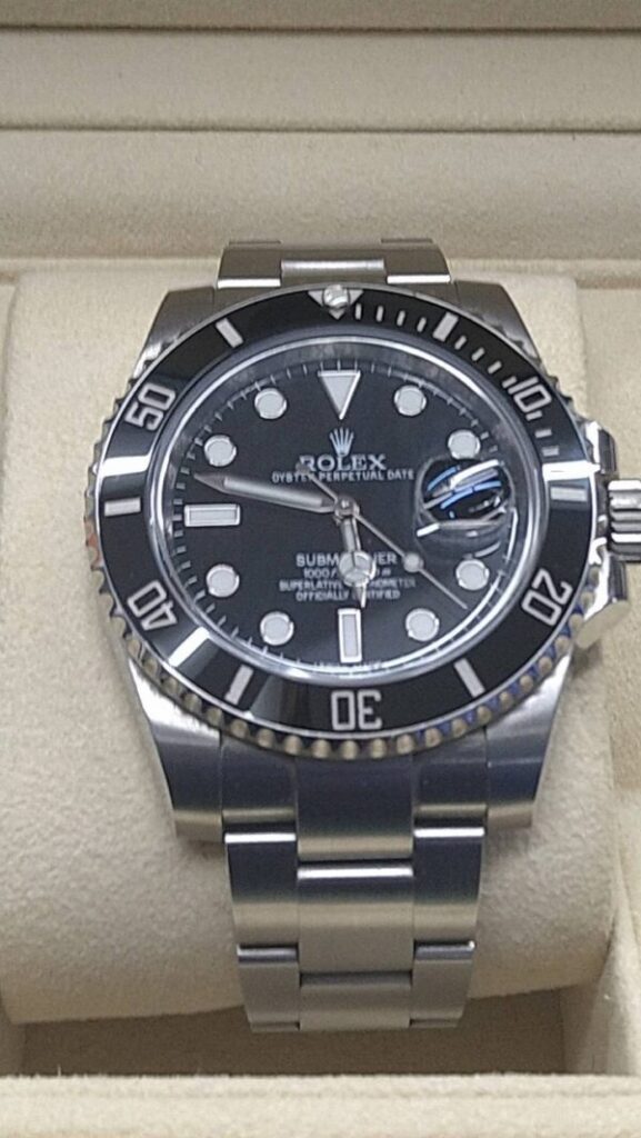本日ご紹介するのは、高級時計の代名詞であり、世代を超えて憧れ続けられるロレックスの象徴、『サブマリーナー デイト』でございます。ダイバーズウォッチの完成形とも称されるこのモデルは、洗練されたデザインと圧倒的な実用性を兼ね備えた、まさに一生ものの名作。特別な想い入れのあるお品とお伺いしました。